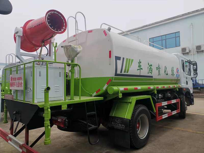 CLW5160GPSD5綠化噴灑車,東風多利卡D9抑塵車,配60型霧機組,水平靜風狀態下,實測射程65米,高端底盤配置,康明斯180馬力6缸發動機,原廠窨,方向助力,ABS,9.00鋼絲胎,帶行車記錄儀。