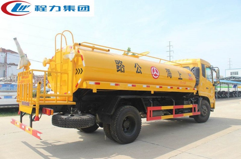 罐體有效容積12-15立方,罐體采用國標(biāo)Q235碳鋼,罐體厚度4mm,自吸自排水泵,帶前沖裝置,后灑裝置,側(cè)噴裝置,高位花灑裝置,綠化高炮,安全操作平臺(tái)。