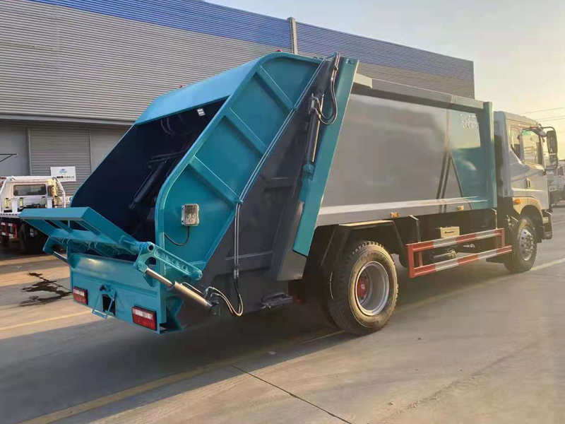 有效壓縮容積12立方,壓縮倍率3-4倍,壓縮后生活垃圾密度從0.36變?yōu)?.9以上,帶污水收集箱,新款平板式箱體更美觀,尾部帶密封橡膠墊,可防止污水滴漏造成二次污染。可帶全密封翻轉(zhuǎn)斗和掛桶裝置,PLC一鍵操控系統(tǒng),駕駛室和尾部雙操控機(jī)構(gòu)。