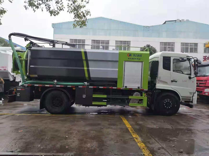 罐體總容積15立方米,清洗5方,吸污10方,兩倉互通,中間吸污罐體采用8mm碳鋼,新山東濰柴180匹馬力發動機帶2BE204水循環泵,進氣管加過濾網,后蓋4個卡子鎖緊,罐體兩側加寬平臺加護欄,后部一個150mm的球閥一個100mm的球閥,送8米吸污管,后面加一個LED工作照明燈,加LED箭頭燈,駕駛室上方裝長警燈配進口品浮高壓清洗泵,270流量,19兆帕,配60米內徑22#高壓管,組合噴頭10個,清洗卷盤安裝在后后封頭上,整車顏色可選.