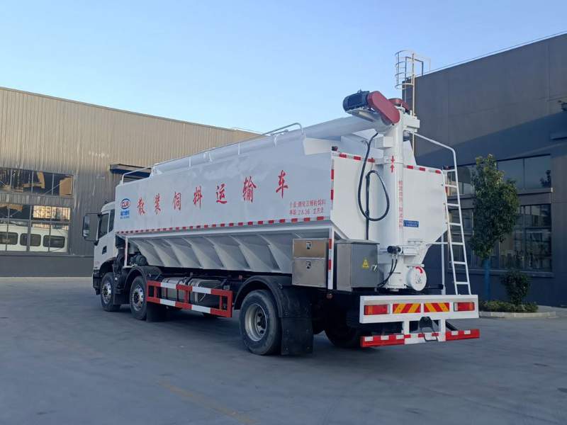 東風(fēng)天錦小三軸散裝飼料運(yùn)輸車,龍擎260馬力, 法士特8檔變速箱,1995+5000mm軸距,295/80R22.5真空胎,電動(dòng)門窗,中控鎖,ABS,方向助力,空調(diào),環(huán)保+燃油,整車質(zhì)量10噸,額定載質(zhì)量15噸。